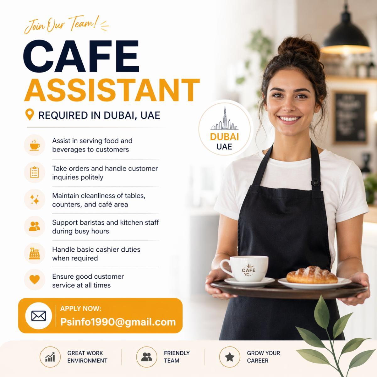 Cafe Assistant Required in Dubai