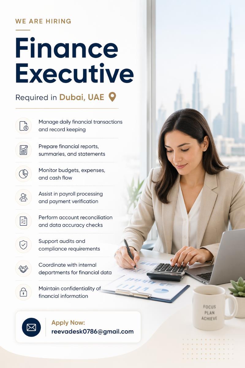 Finance Executive Required in Dubai - Dubai