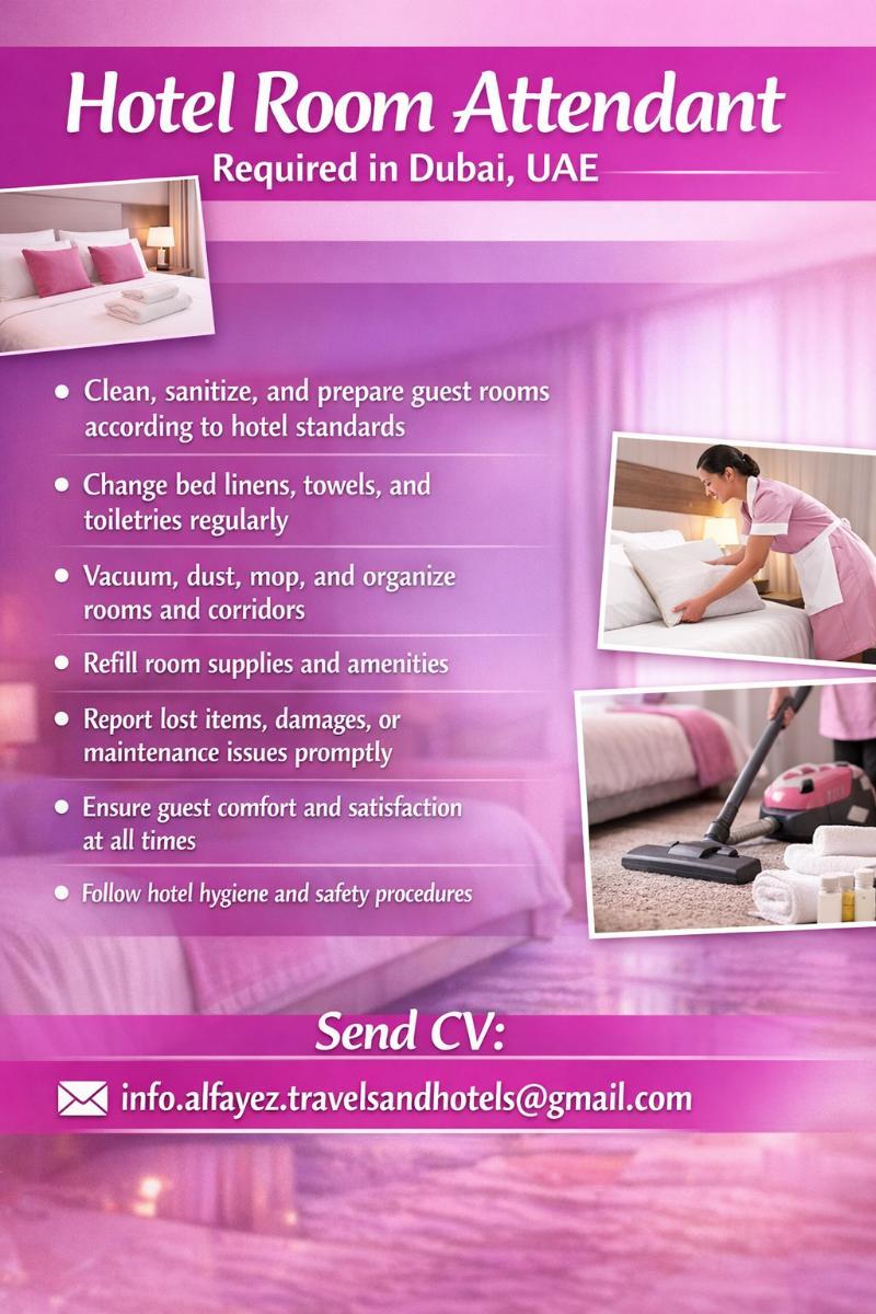 Hotel Room Attendant Required in Dubai