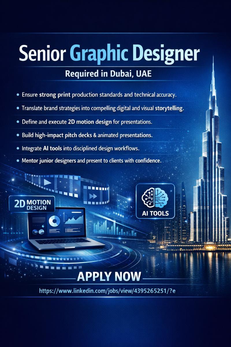 Senior Graphic Designer Required in Dubai - Dubai