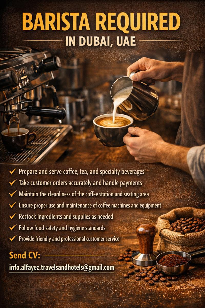 We are looking for a skilled, energetic, and customer-focused Barista to join our team. The ideal candidate will be passionate about coffee, hospitality, and delivering excellent customer service in a fast-paced environment.