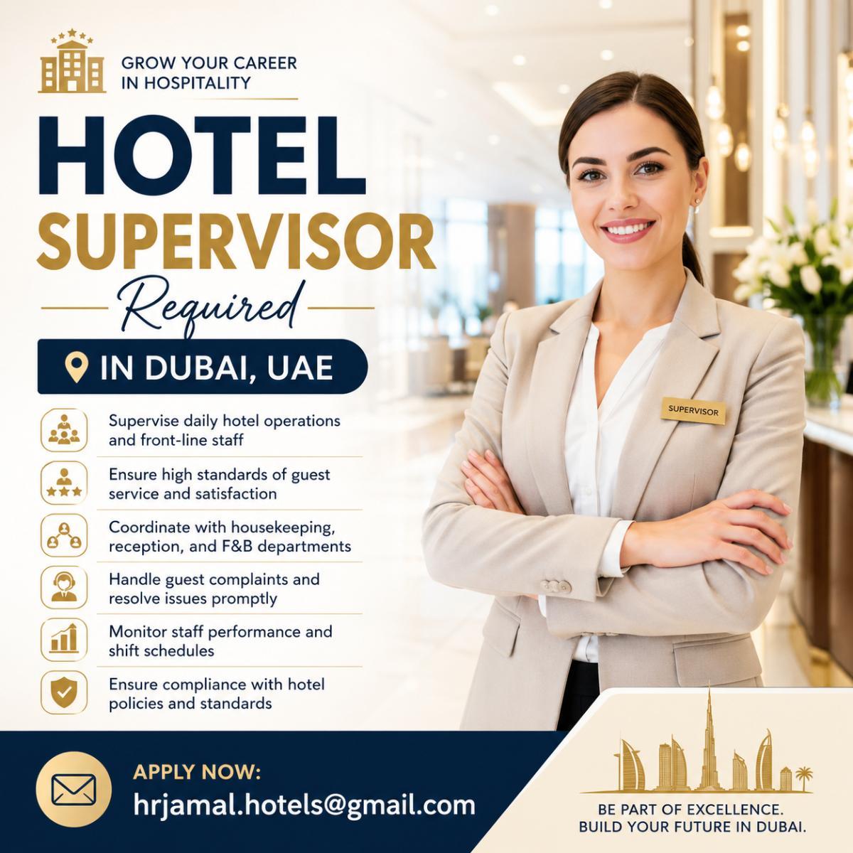 Hotel Supervisor Required in Dubai - Dubai
