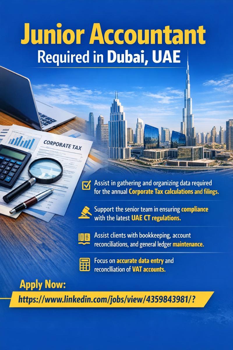 1+ years of experience in accounting firms, with strong knowledge of UAE tax regulations.